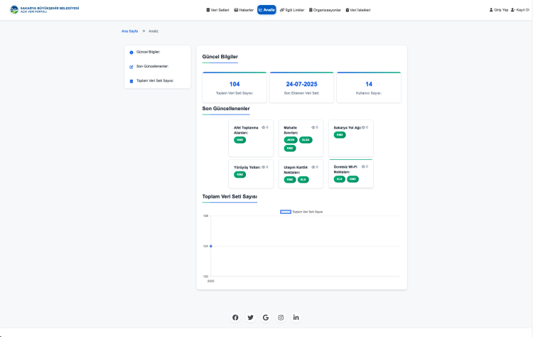 Ulusal Akıllı Şehir Açık Veri Platformu (ULASAV) ile entegre çalışan sistem, Sakarya’daki verilerin ulusal açık veri politikalarıyla uyumlu hale gelmesini sağlıyor.Açık ve erişilebilir yönetim anlayışıyla Sakarya, geleceğin daha katılımcı ve sürdürülebilir şehir modeli için örnek oluşturuyor.