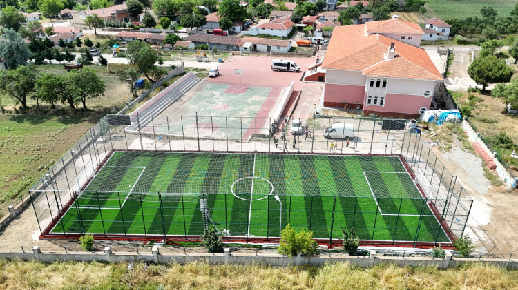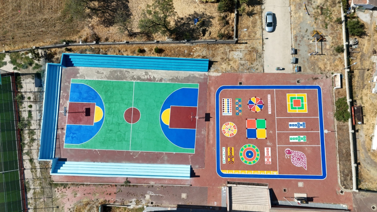 Sadece bununla da kalmayan muhtar, okulun önüne öğrencilerin teneffüslerde ve derslerde keyifli vakit geçirmesi için oyun alanları çizdirerek boyattı.