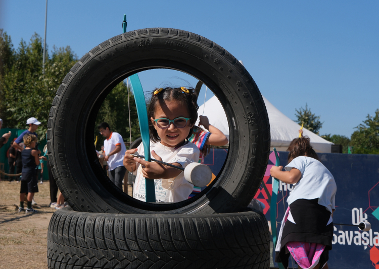 Millet Bahçesi’nde düzenlenen etkinliklerde binlerce çocuk ve aileleri, okçuluk, mas güreşi, çömlek yarışları ve çeşitli ata sporlarını deneyimleyerek kültür mirasıyla buluştu.