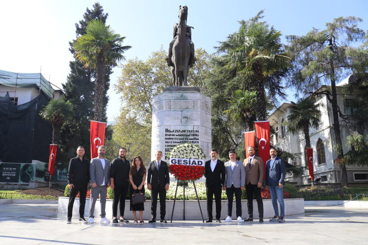 BURSA (İGFA) – 1991 yılında Bursalı genç sanayici ve iş insanlarının bir araya gelmesiyle kurulan GESİAD, 34. yılını kutluyor. GESİAD Başkanı Tolga Papatya ve Yönetim Kurulu Üyeleri, kuruluşlarının 34. yılı dolayısıyla Atatürk Heykeli’ne çelenk bıraktı.