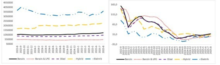 Yapılan araştırmaya göre hazırlanan “Otomobil Piyasası Görünümü” raporunda, Ağustos ayında otomobil talep endeksi geçen yıla göre yüzde 11,4 yükseldi. Reel fiyatlardaki düşüş yüzde 11,1’e gerilerken, elektrikli araçlar 3,6 milyon TL ortalamayla en pahalı yakıt türü oldu.