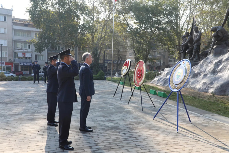 BURSA (İGFA) – Bir milletin küllerinden doğuşu olan 30 Ağustos Zafer Bayramımızın 103. Yıldönümü kutlamaları bu sabah İnegöl’de düzenlenen resmi törenlerle başladı. Büyük zaferin coşkusunun yaşandığı ilk tören, saat 09.00’da Atatürk Anıtı önünde gerçekleştirildi. İnegöl Kaymakamı Eren Arslan, İnegöl Belediye Başkanı Alper Taban, Cumhuriyet Başsavcısı Veli Ecir, İnegöl Ağır Ceza Mahkemesi Başkanı İsmail Aydın, Garnizon Komutanı Havacı Piyade Binbaşı Mert Karayel, siyasi partilerin başkan ve yöneticileri, Muharip Gaziler Derneği İnegöl Temsilciliği üyesi Gaziler ile ilçe protokolünün katıldığı törende sırasıyla Kaymakamlık, Garnizon Komutanlığı ve Belediye Başkanlığı çelenkleri anıta sunuldu. Ardından saygı duruşunda bulunularak İstiklal Marşı okundu.