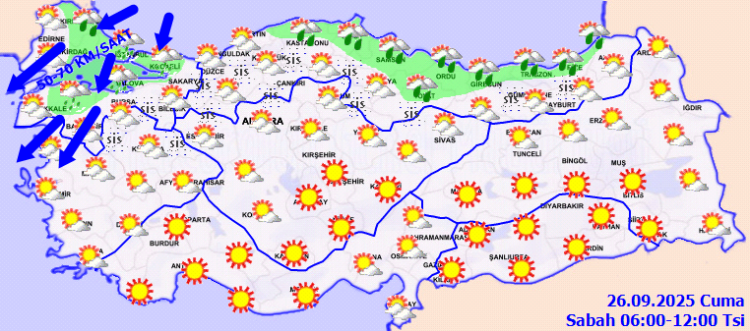 ANKARA (İGFA) – Meteoroloji Genel Müdürlüğü, 26 Eylül Cuma gününe ilişkin hava tahmin raporunu yayımladı.