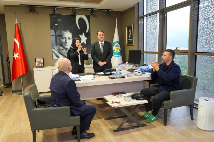 MANİSA (İGFA) – Avrupa’da işitme engelliler sporuna liderlik eden Manisa İşitme Engelliler Spor Kulübü Başkanı Bilal Cansu ve yönetimi, DCL Yönetim Kurulu Üyeleri Thomas Kramer ve Rosario De Caro ile birlikte Manisa Büyükşehir Belediye Başkanı Besim Dutlulu’yu ziyaret etti.