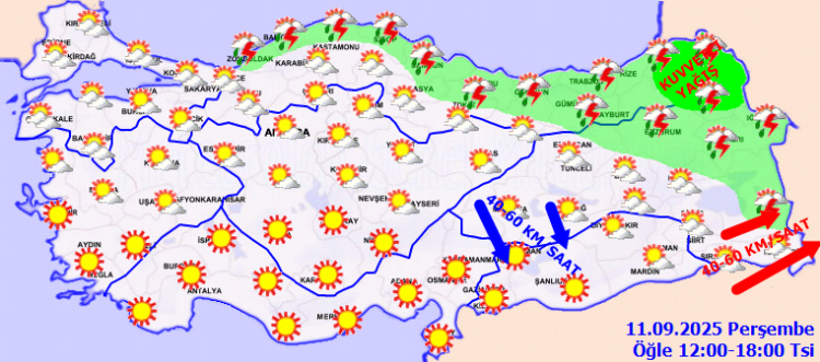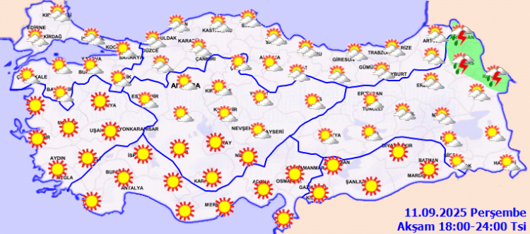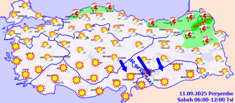 ANKARA (İGFA) – Meteoroloji Genel Müdürlüğü, 11 Eylül Perşembe gününe ilişkin hava tahmin raporunu yayımladı.