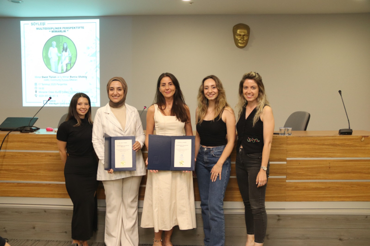 Etkinlik, soru-cevap bölümüyle devam etti. HARC Community kurucularına, Sosyal ve Kültürel Etkinlikler Komitesi Başkanı Mimar Bahar Kuş ve Başkan Yardımcısı Mimar Aysu Derman tarafından teşekkür plaketi takdim edildi.