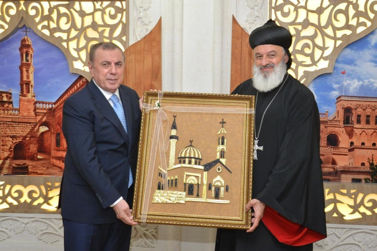 Ziyaretin sonunda Başkan Şahin, Patrik Mor İğnatius II. Efrem Kerim’e plaket takdim etti ve hatıra fotoğrafı çektirildi.