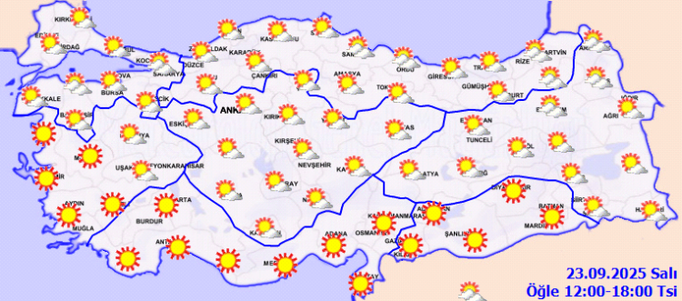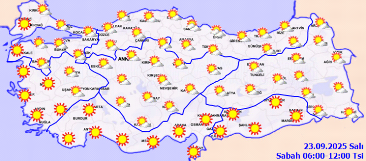 ANKARA (İGFA) – Meteoroloji Genel Müdürlüğü, 23 Eylül Salı gününe ilişkin hava tahmin raporunu yayımladı.
